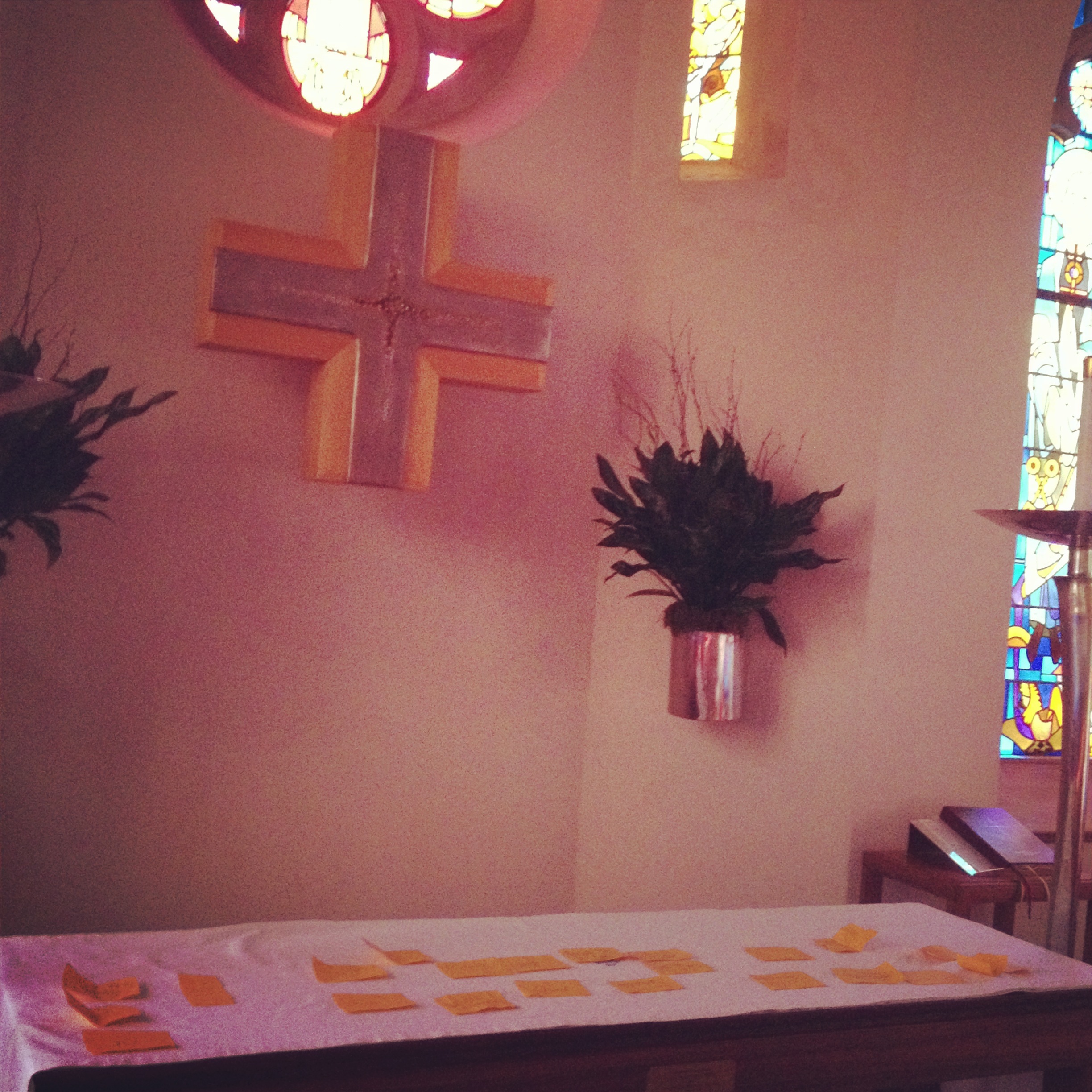 At the close of the story, I told the children about the leadership they’d be expected to take in showing the 5th and 6th graders the new habit we were going to start in chapel on Wednesdays (the day I lead). All year, we’ve been taking prayer requests by voice, imagining that we’re placing those people in our two up-turned hands and then lifting them up to God. Last Wednesday, we took it a step further. I encouraged the children to take a slip of paper, to write on it any request they had–people they wanted to remember, or situations that they might want to bring to Jesus–and by rows, I released them to leave the paper on the altar at the front of the chapel. They brought their hearts up to Jesus and laid their worries down on the altar in front of Him.